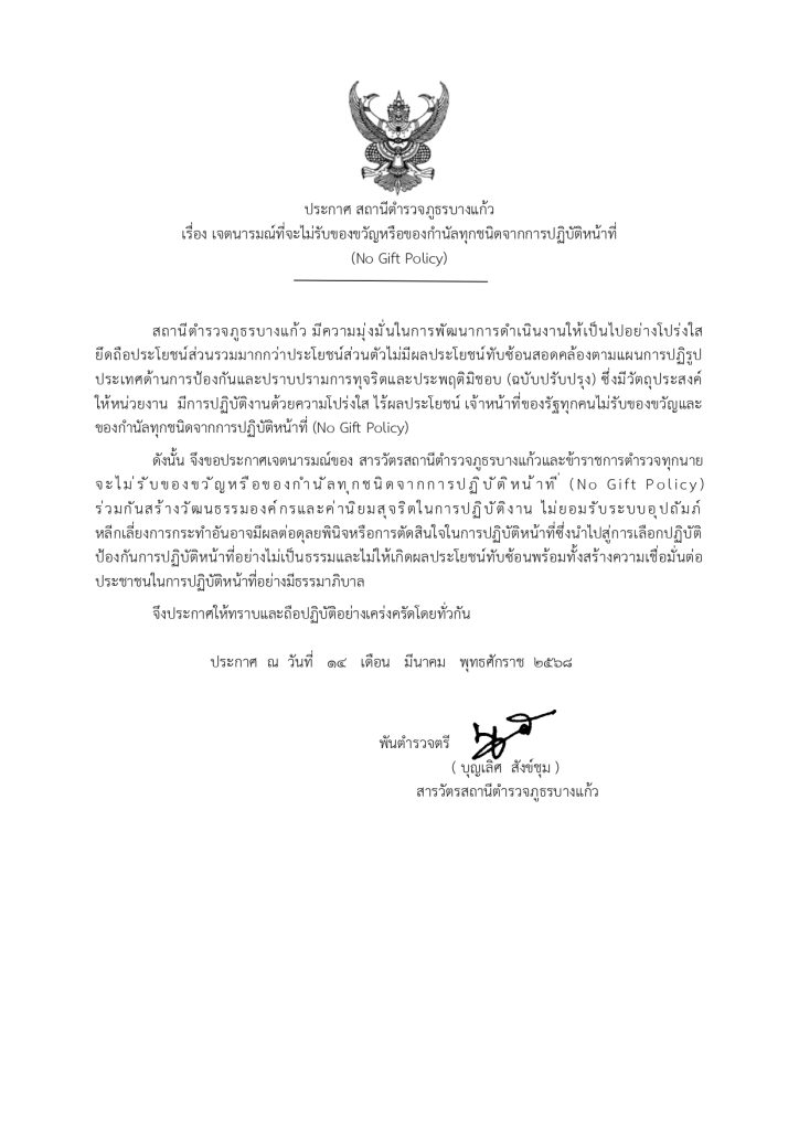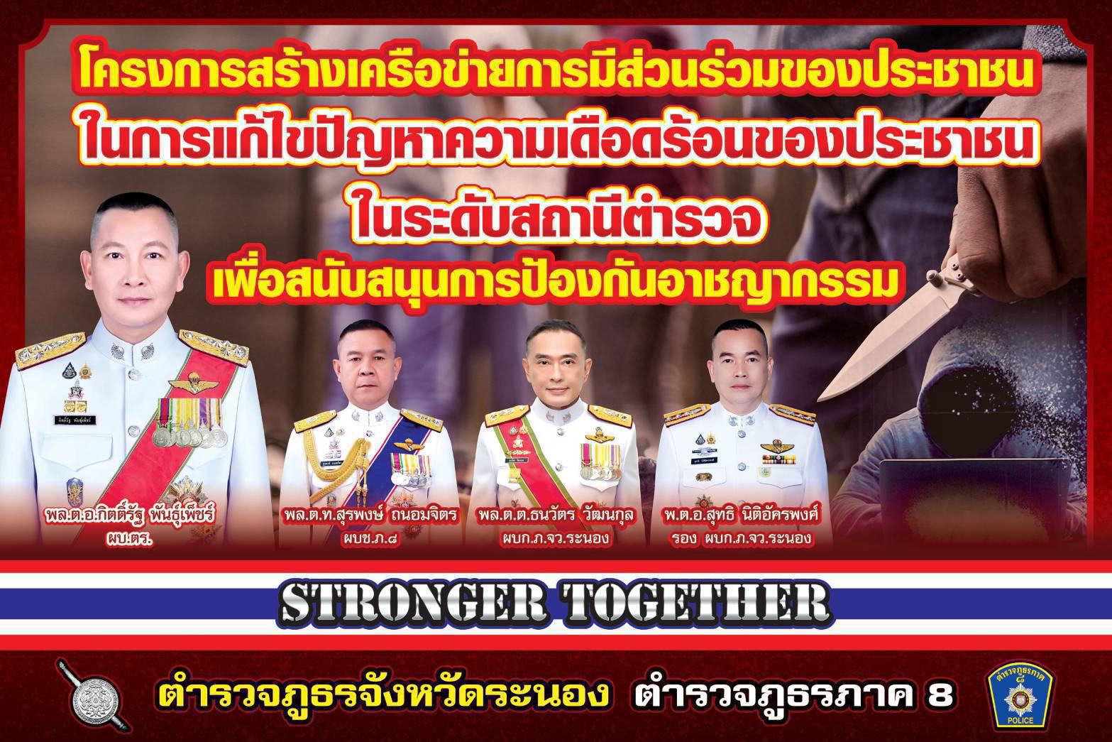 ผู้บังคับการตำรวจภูธรจังหวัดระนอง อวยพรเนื่องในเทศกาลสงกรานต์ ปี ๒๕๖๘ เที่ยวสงกรานต์สนุกปลอดภัย ตำรวจภูธรจังหวัดระนองจะดูแลความปลอดภัย และขอให้เล่นน้ำสงกรานต์อย่างมีความสุข