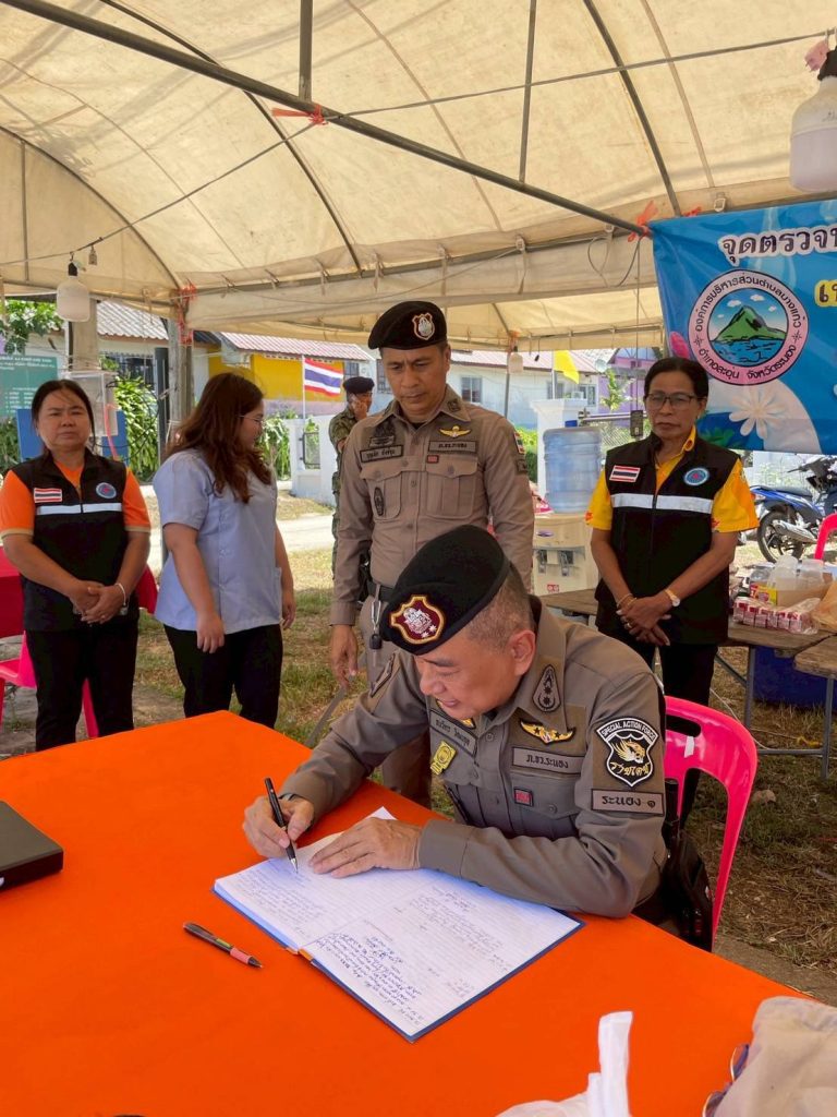 พล.ต.ต.ธนวัตร วัฒนกุล ผบก.ภ.จว.ระนอง ออกตรวจเยี่ยม มอบสิ่งของและน้ำดื่ม เพื่อเป็นขวัญและกำลังใจให้กับเจ้าหน้าที่ประจำหน่วยบริการประชาชน พร้อมแนะนำ กำชับการปฏิบัติ เกี่ยวกับการใช้รถใช้ถนนเพื่อป้องกันการเกิดอุบัติเหตุช่วงเทศกาลสงกรานต์